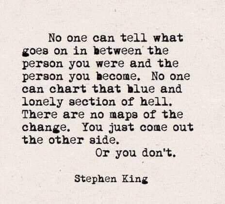 THE PATH is not linear – this is the great illusion and the great mystery of what seems to be and what ends up ‘being’ the end result of living a life – the hell that Stephen alludes to is simply the struggle to arrive in ‘being’ opposed to living in non-awareness opposed to awakedness – you already are what you will become – it’s in you now and forever – it is the ability to ‘see’ and to accept the meaning of who you are that constitutes the lack or level of hell and or suffering.